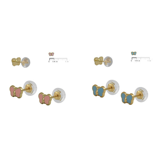 Little Girl 14K Yellow Gold Pink/Blue Butterfly Silicone Back Earrings