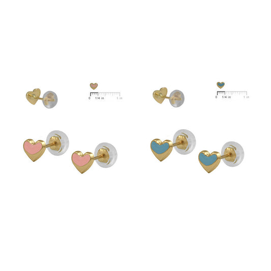 Baby & Toddler 14K Yellow Gold Pink/Blue Enameled Heart/Butterfly Silicone Back Earrings