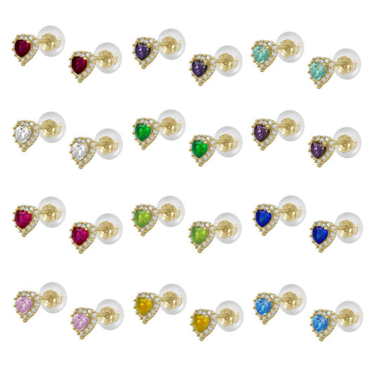 Little Girls 14K Yellow Gold Birthstone Silicone Back Heart Shaped Earrings