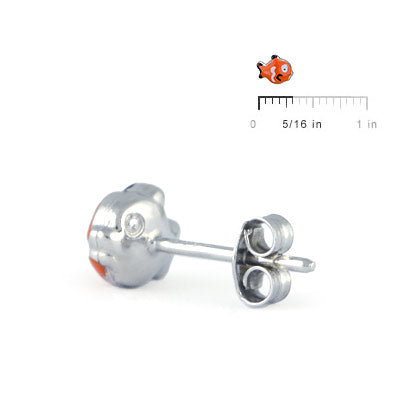 Kids Jewelry - Sterling Silver Enameled Clown Fish Stud Earrings