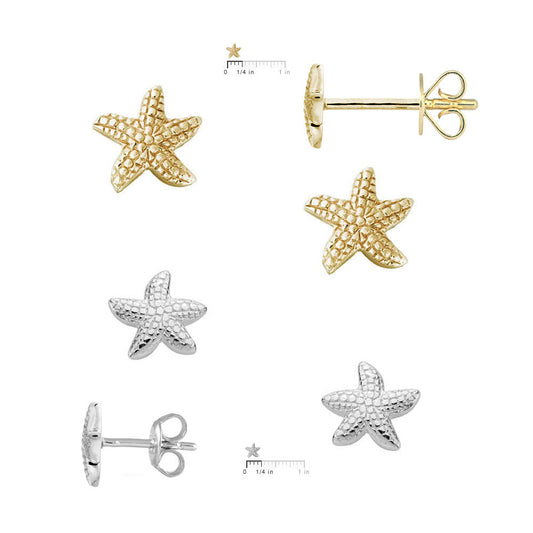 Kids 14K Yellow Gold/Sterling Silver Starfish Stud Earrings For Girls