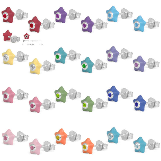 Sterling Silver Girls Simulated Birthstone Enameled Star Stud EarringsRegular price $28.40 CADRegular priceUnit price per-