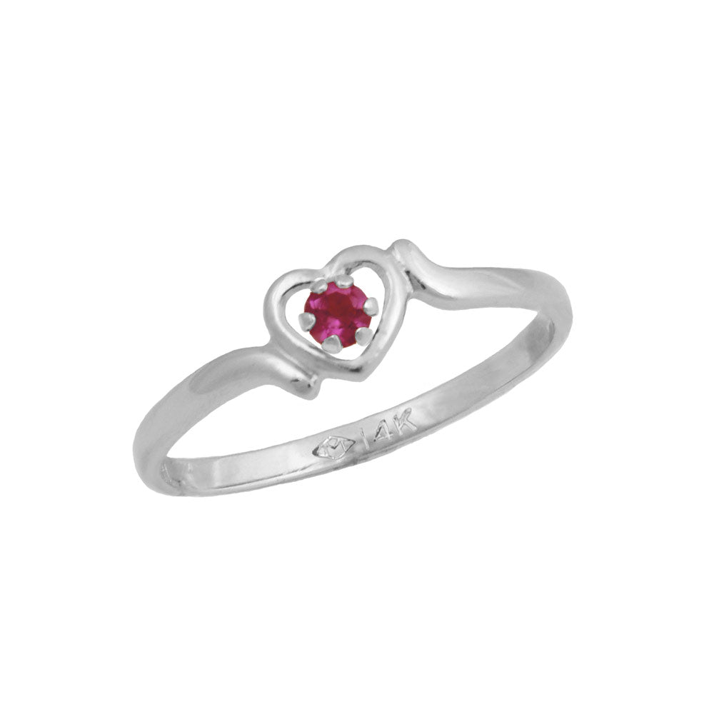 4 1/2 Girls 14K White Gold Genuine Birthstone Heart Shaped Ring For Children & Tweens