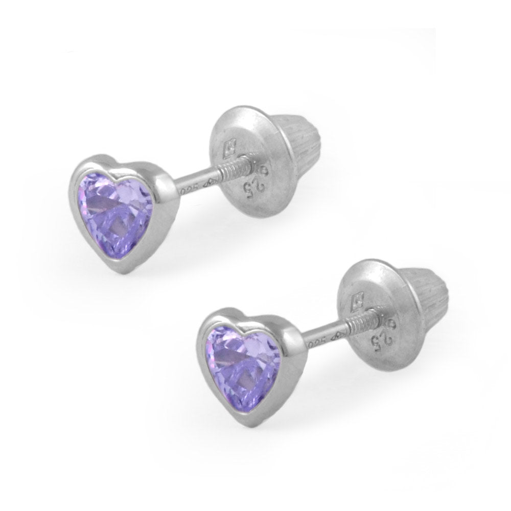 These girl's heart shaped screw back earrings are simply lovely. Crafted of highly polished sterling silver, each earring features a sparkling zirconia to simulate 12-month birthstone. They are designed with a short post to suit a little one's ears. The screw backs are smooth on the bottom for comfort and safety. A beautiful children's gift for any occasion.- Age (Yrs): 0-16 (Age recommendation is approximate)