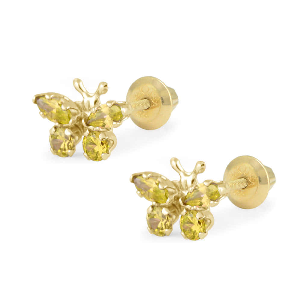 Girls 14K Yellow Gold Birthstone Butterfly Screw Back Earrings