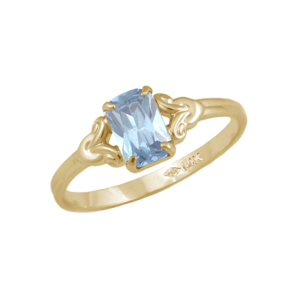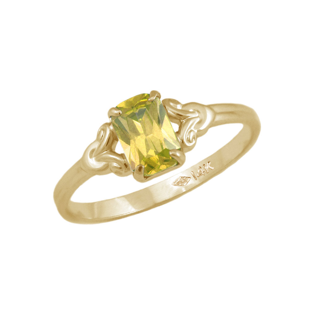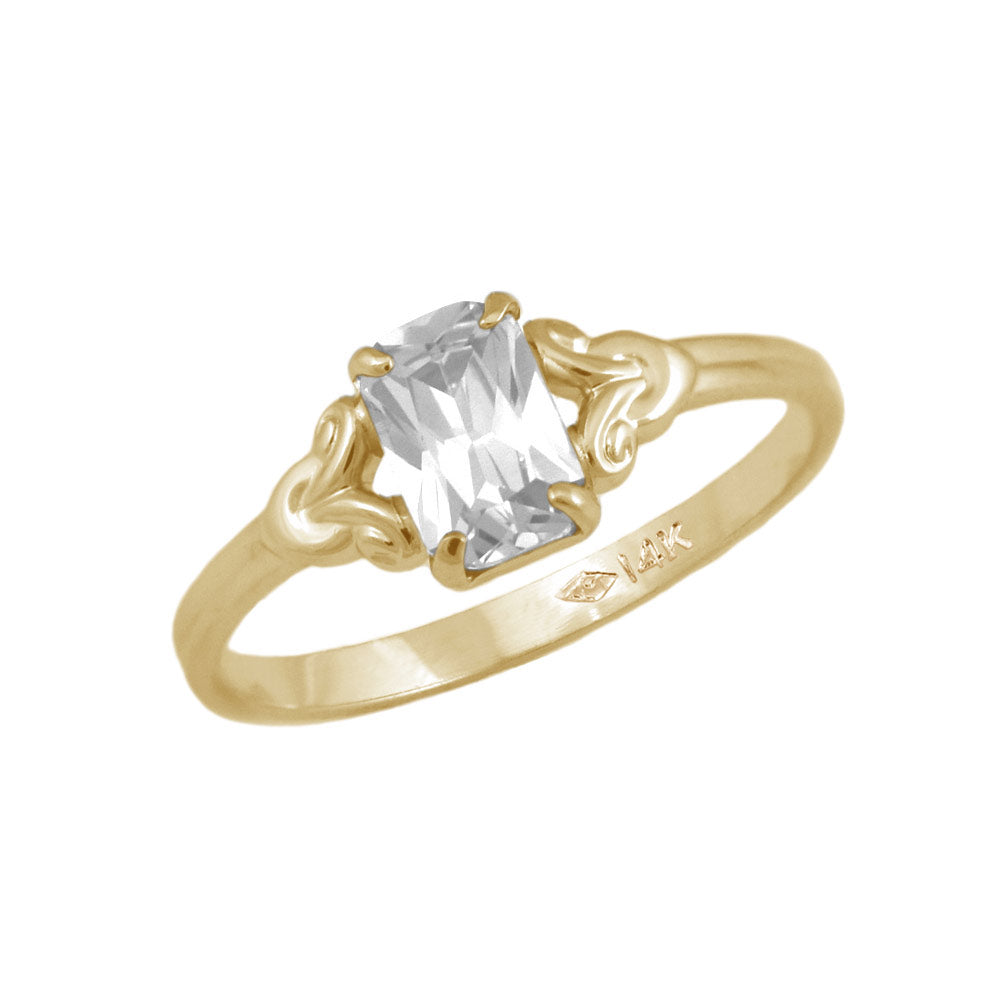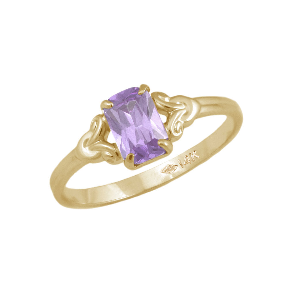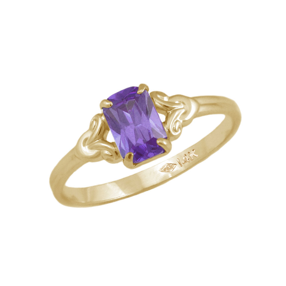 Girls Jewelry - This sweet ring is made of high polished 10k yellow gold and is set with a 4mm x 6mm rectangle shaped cubic zirconia to simulate 12-month birthstones. Size is 4. A lovely gift choice.- Age (Yrs): 5-16 (Age recommendation is approximate)
