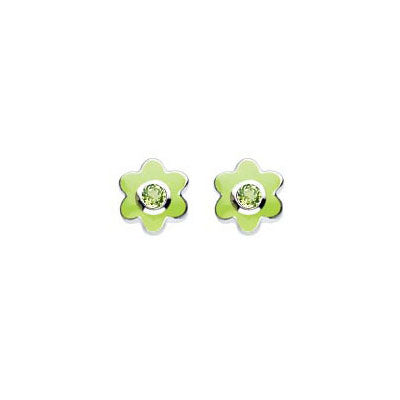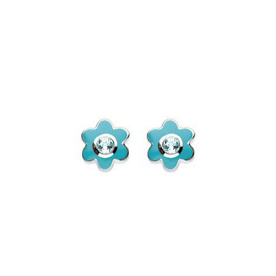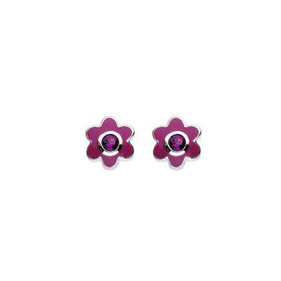 Kids stud earrings for girls. 12-month birthstones (Simulated by sparkling Swarovski crystal) are set on color enameled sterling silver flower setting. These earrings are keepsakes and inspirational gift for your loved one. They come with regular push on backs.