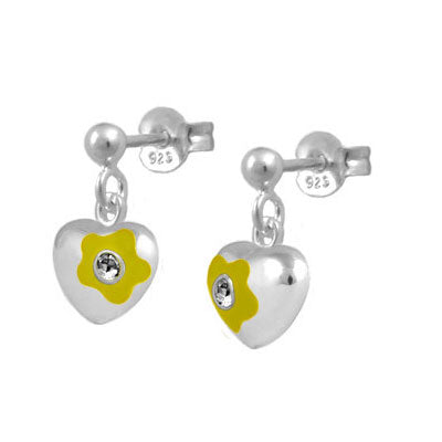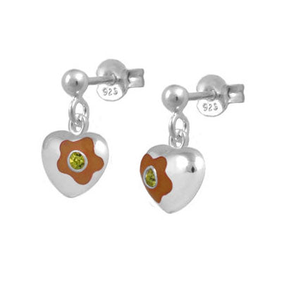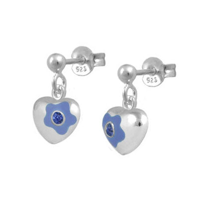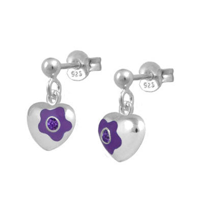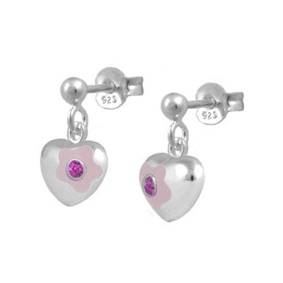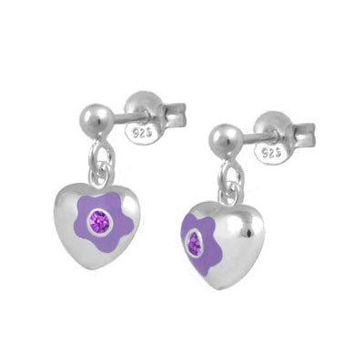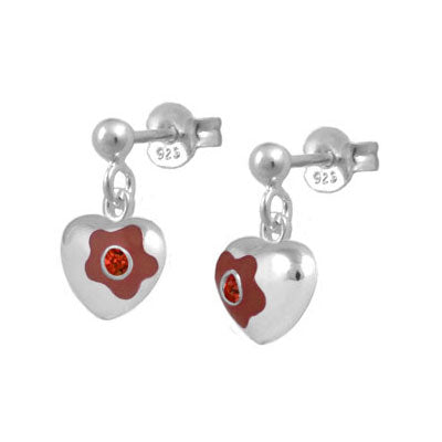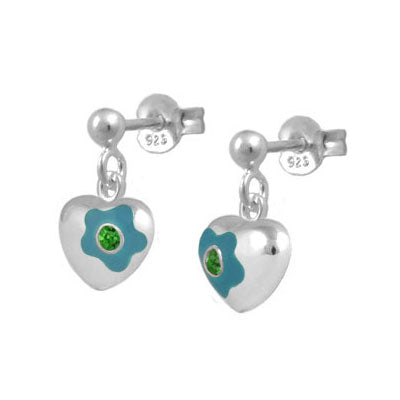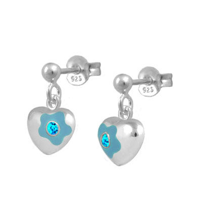 Jewelry for kids and teens - Sterling silver girls earrings. Each one features a dangling flower enamel heart set with a sparkling Swarovski crystal to simulate 12-month birthstone. Push one backs. Beautiful gift with packaging for any occasions such as birthday, holidays, baptism, christening, or first communion, etc.