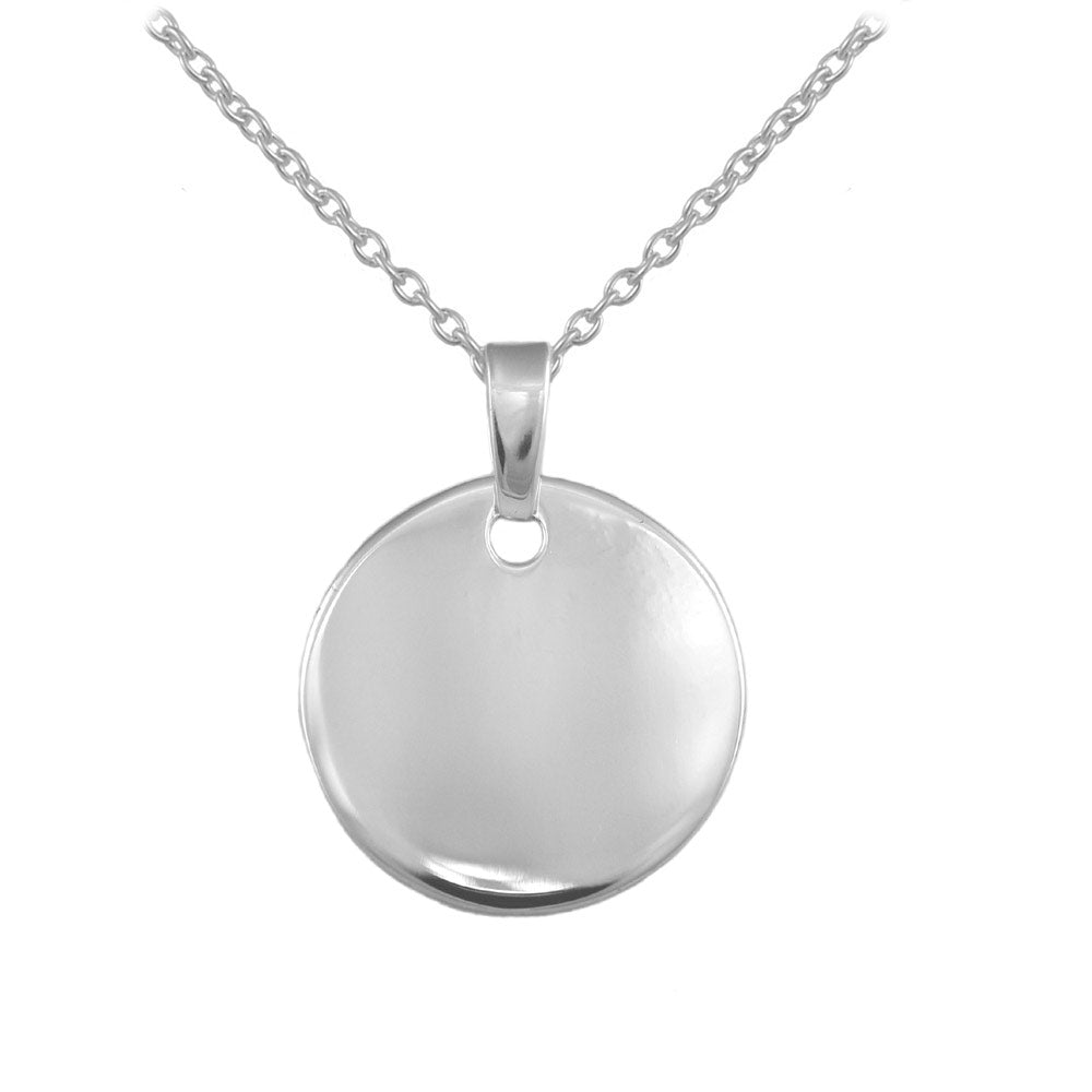 Sterling silver children and teenage necklace features a highly polished tag pendant in round, heart, oval or square shape, which can be personalized by our laser engraving service. Three optional lengths of trace chains are adjustable sizes 12, 13 and 14 inches; 14, 15 and 16 inches; 16, 17 and 18 inches. Gift choice of any occasion for both boys and girls.