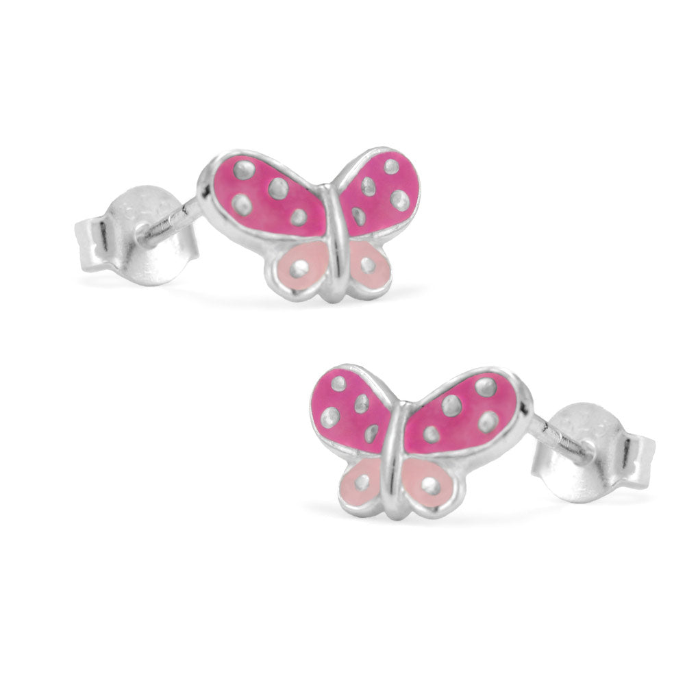 Girl's Jewelry - Sterling Silver Purple Or Pink Enameled Butterfly Earrings