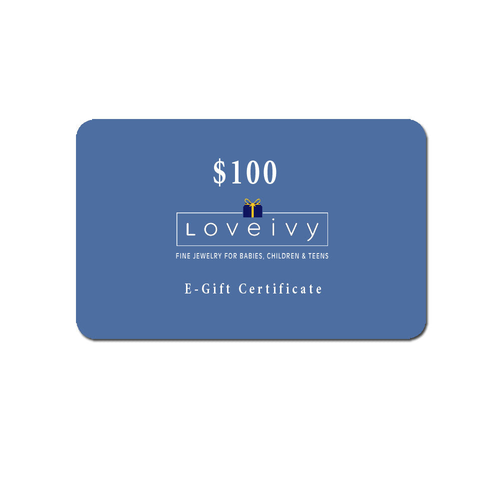 Loveivy.com offers e-gift cards at U.S. dollar amount of $25, $50 and $100, there is NO tax or shipping charge, and it never expires!