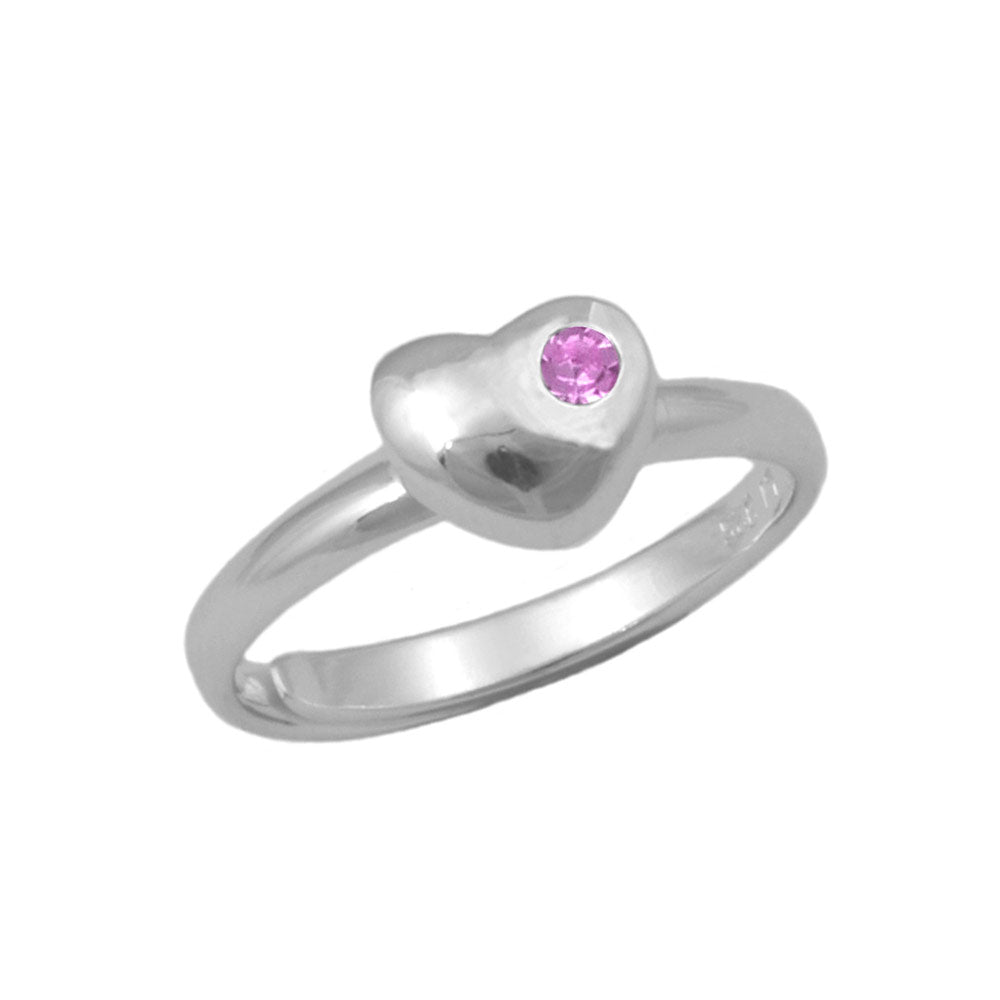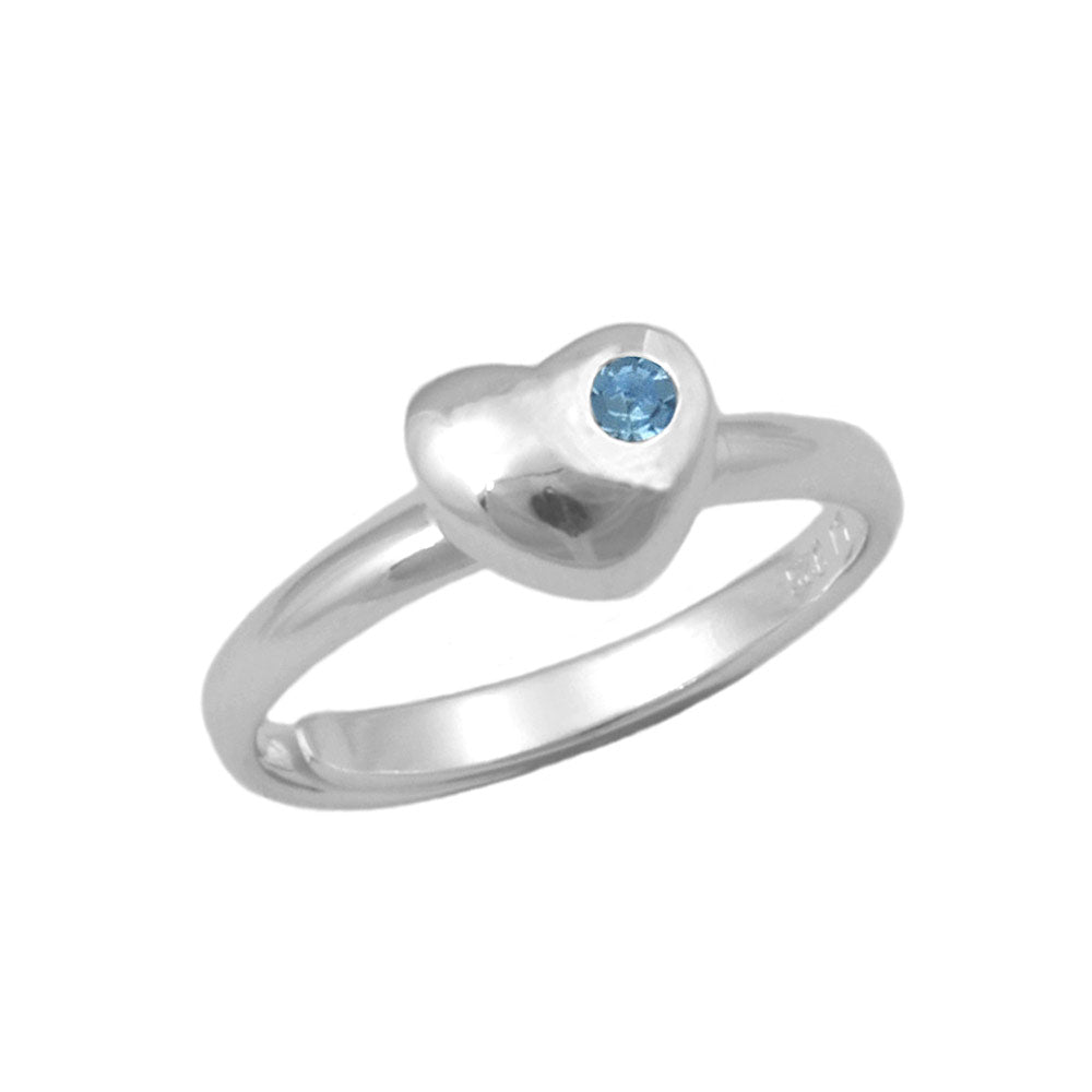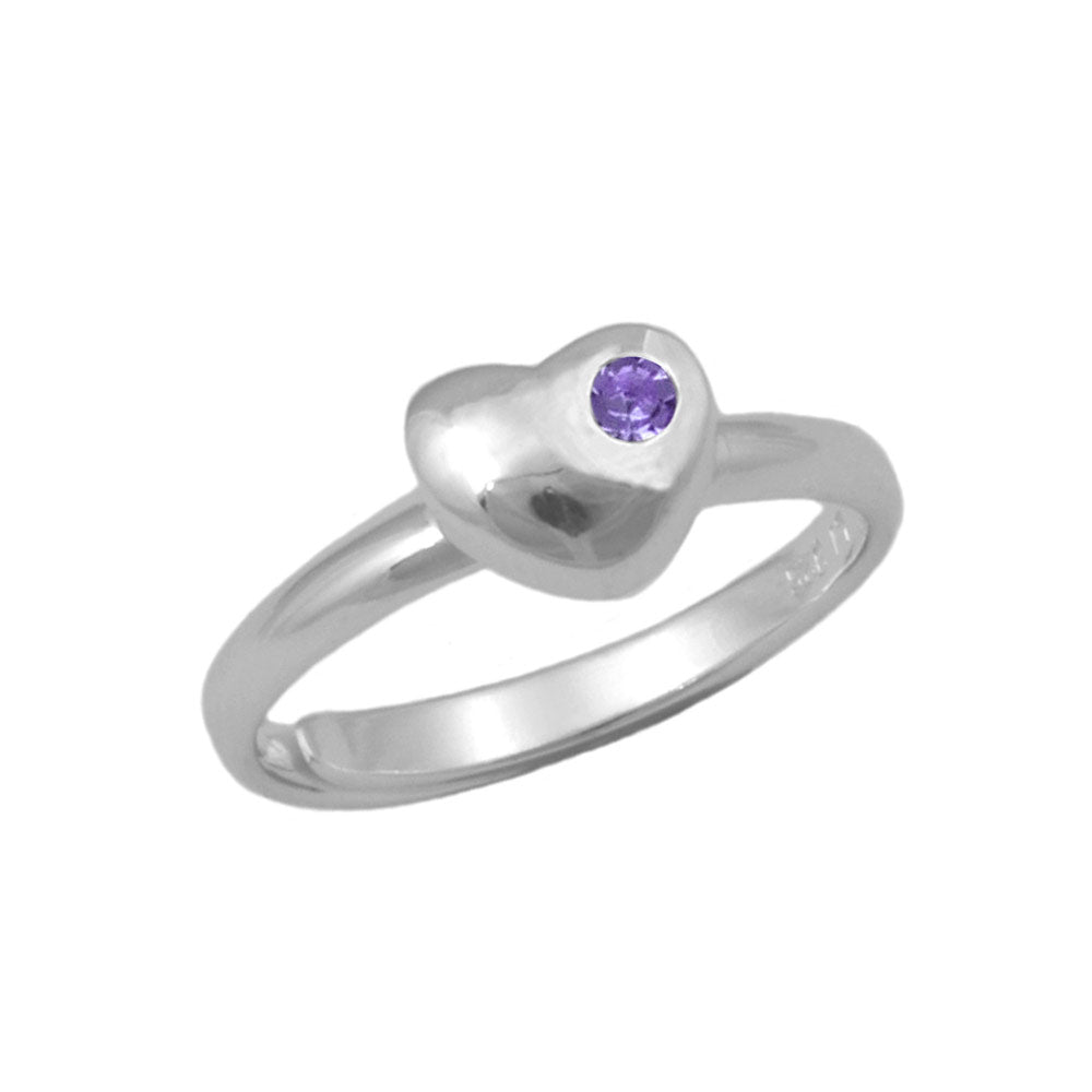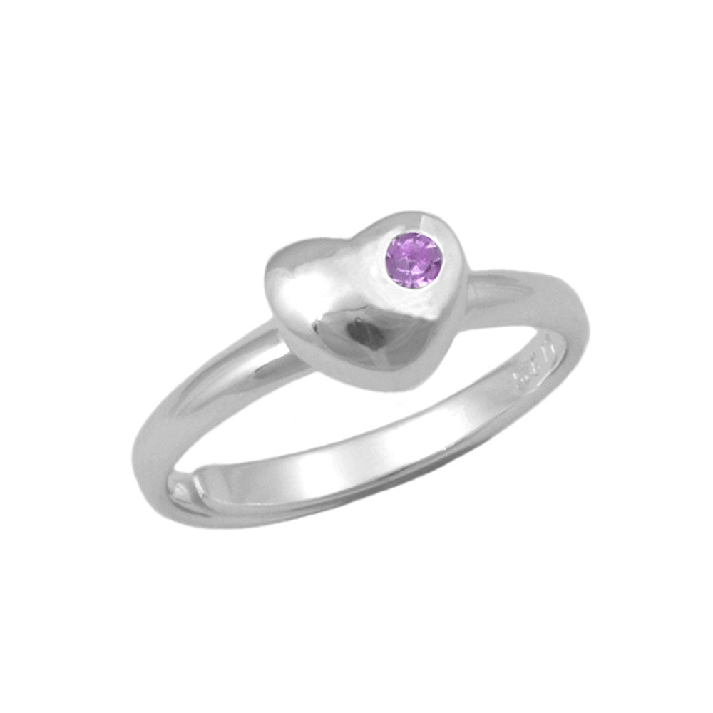 Sterling Silver Simulated Birthstone Heart Ring Adjustable Size 3 To 7 For Girls