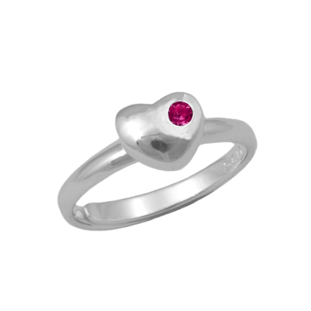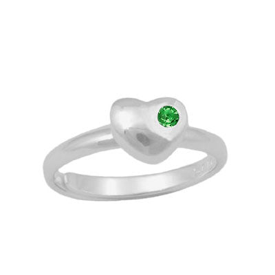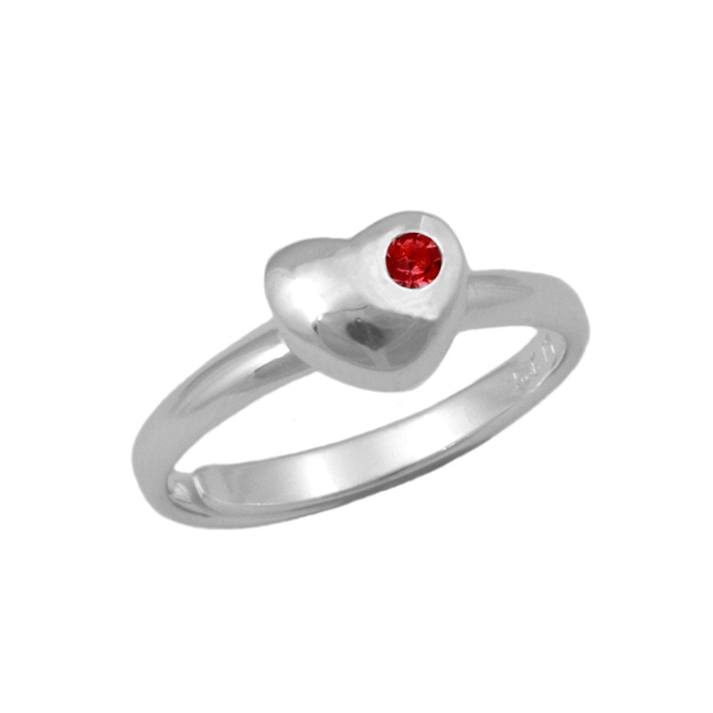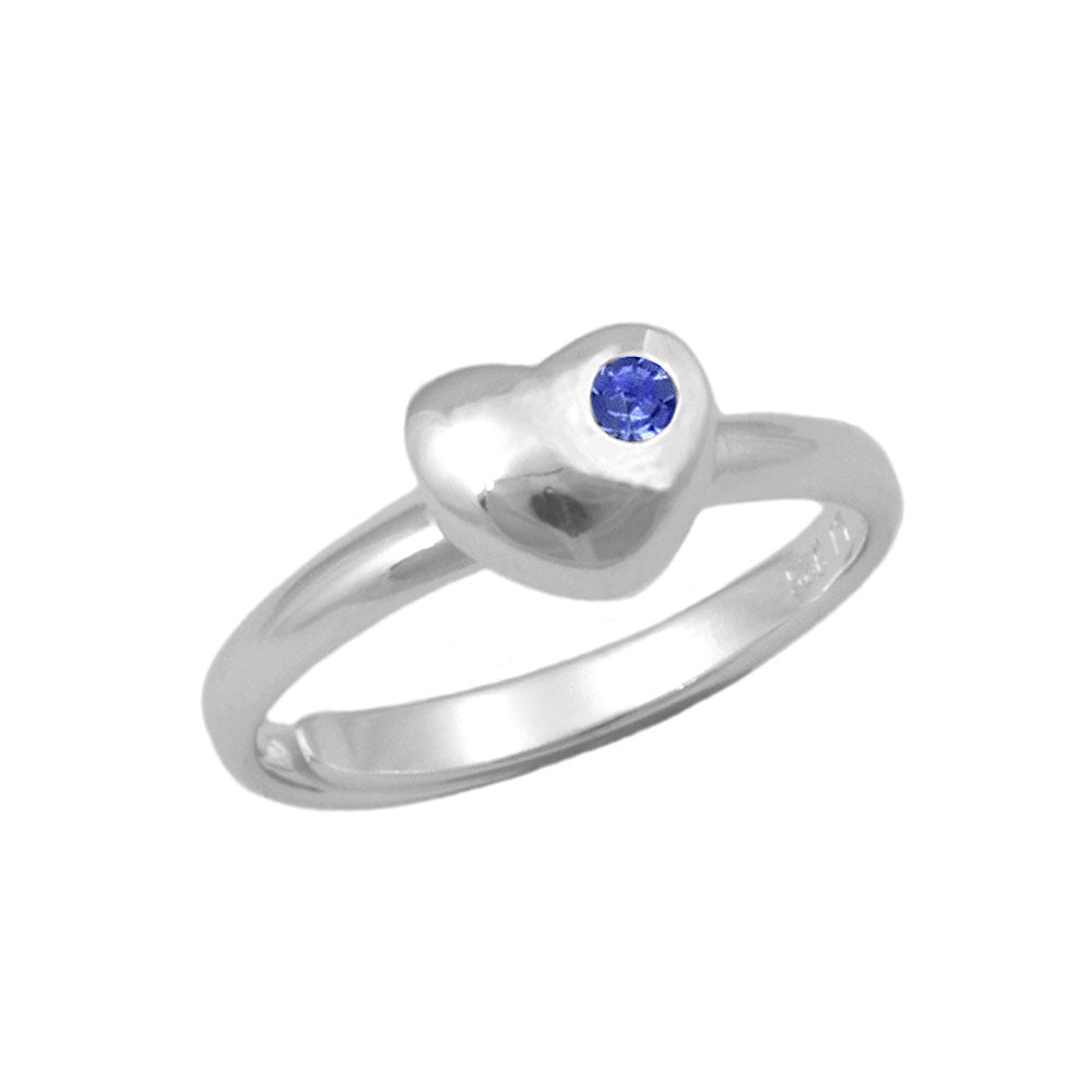 Sterling Silver Simulated Birthstone Heart Ring Adjustable Size 3 To 7 For Girls
